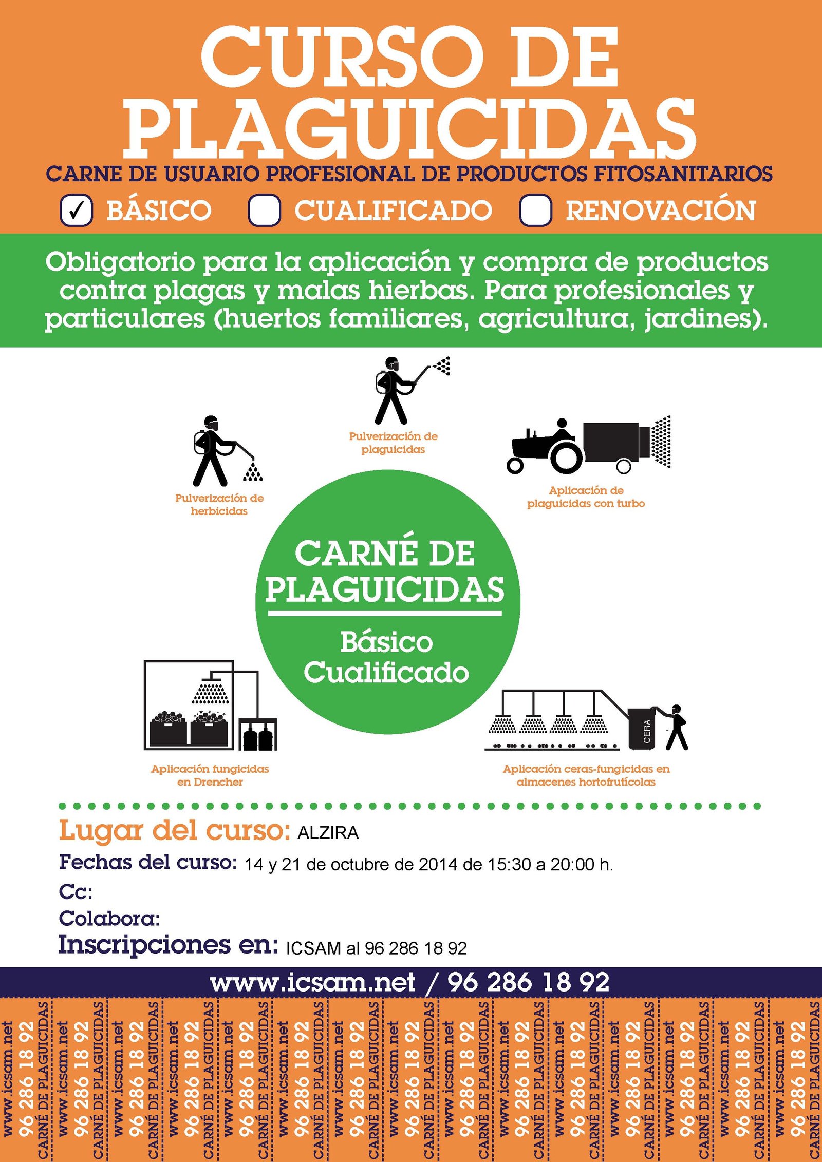Se ha organizado un curso para la obtención del carnet Manipulador de Plaguicidas en Alzira (Valencia) los días 14 y 21 de Octubre en un horario de 15:30 a 20:00 horas.
